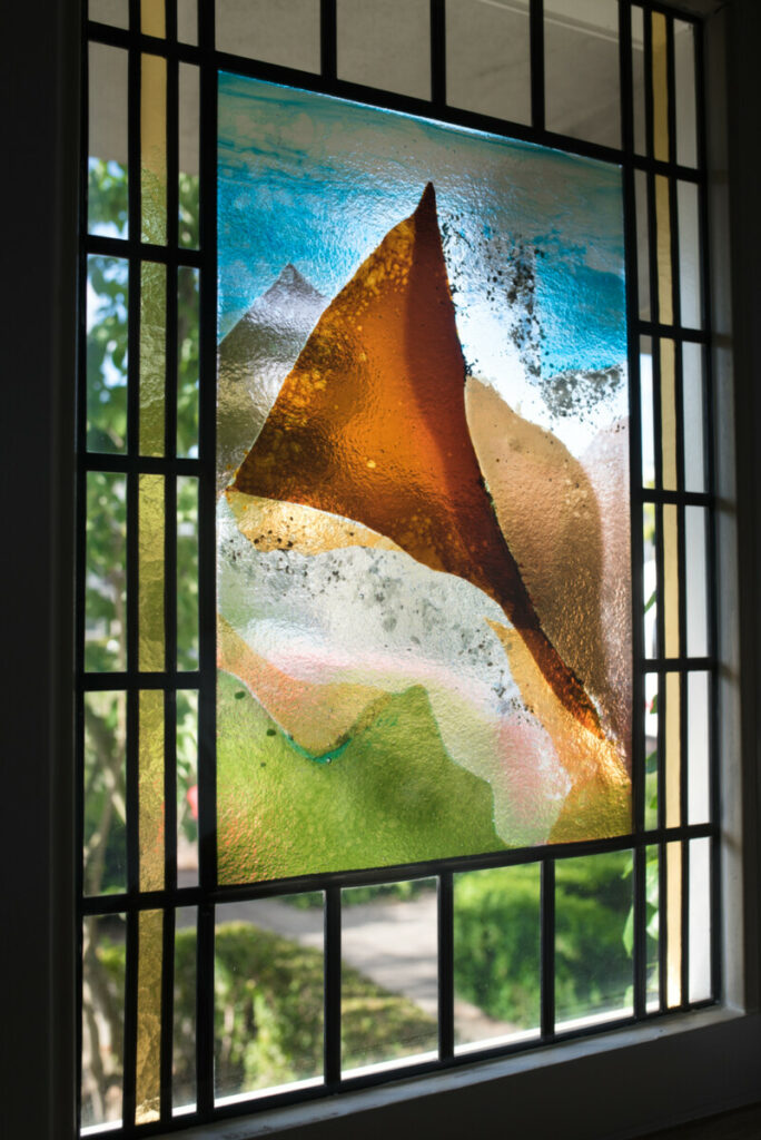 Naast onze voordeur hebben wij een eigen ontwerp van glas in lood laten maken door Claudia. Het symboliseert de vrijheid die we voelden tijdens onze vakantie. Elke keer als we er langs lopen krijg ik dat gevoel weer terug. En dat is dus elke dag. Het is geweldig om zo’n mooi eigen ontwerp te hebben van glas in lood in ons eigen huis. Werkelijk prachtig.